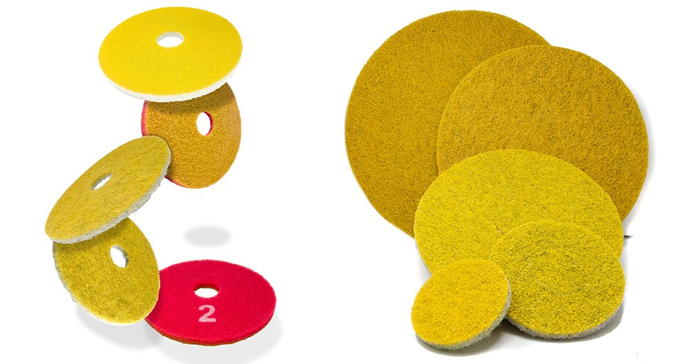 New and revolutionary diamond pads for floor polishing. Ideal for surfaces in natural stone, terrazzo, concrete, vinyl and epoxy. Easy to use with any floor scrubbing machines. They remove scratches, even deep, clean and polish. They make your old floor look like new again!