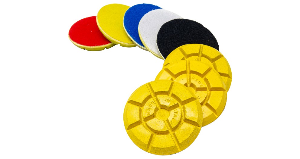 Resinbond diamond discs for polishing marble floors. They leave a very high finish. Resistance and performance even on not levelled surfaces.