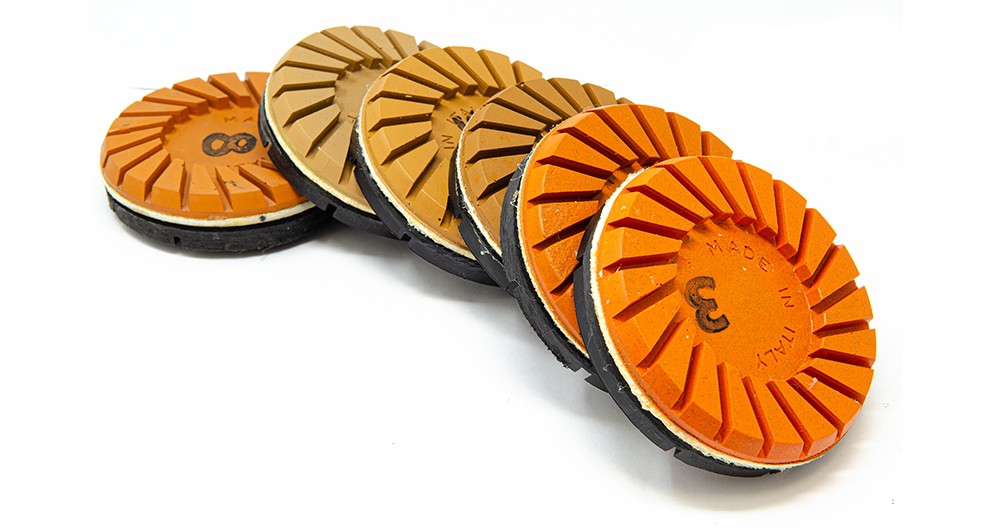 Resin diamond abrasive disks to remove putty and to sand terrazzo and marble. Thanks to advanced formulations, these structured abrasives are 100% effective from the very first use.